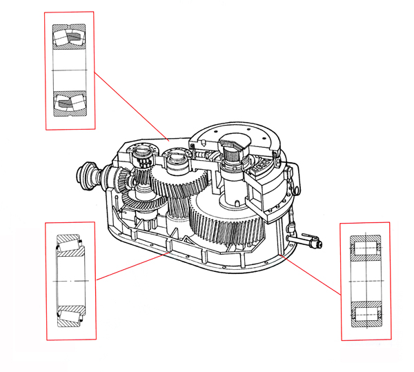齒輪箱的主要功能是變速,增大轉(zhuǎn)矩,以便輸出大的扭矩。一般不間斷連續(xù)運(yùn)行。要求軸承具有高可靠性、長壽命、低噪音。針對齒輪箱行業(yè)的應(yīng)用特點(diǎn)。TWB選用較高純凈度的軸承鋼。通過提高軸承加工精度等措施開發(fā)出多個(gè)系列齒輪箱軸承。